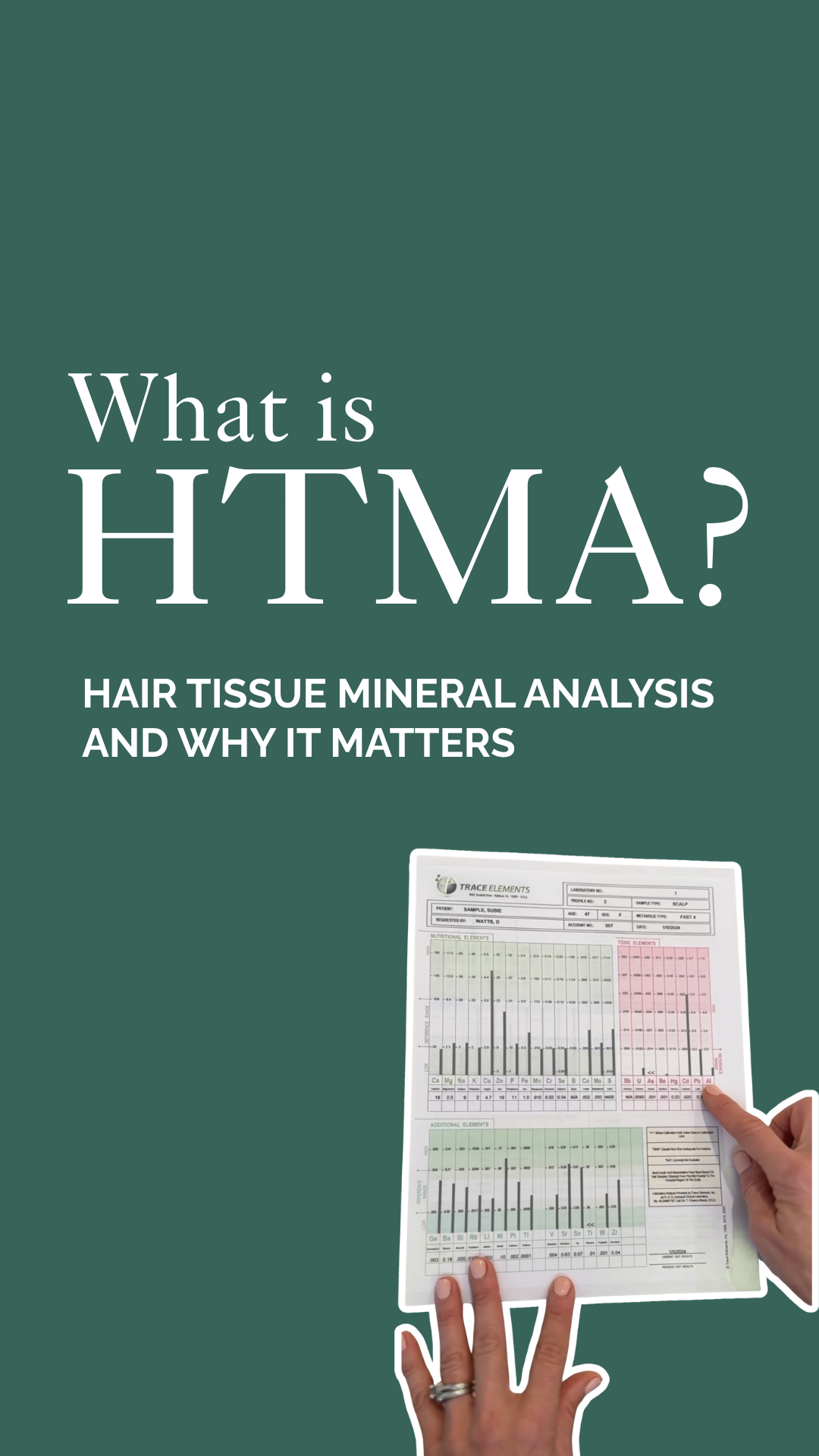 Hair Tissue Mineral Analysis (HTMA) is a simple, non-invasive lab test that measures the levels of key minerals and toxic metals stored in your hair. Why hair? Because unlike blood, which is a snapshot of what’s happening at the moment, your hair provides a reflection of what your body has been storing over the past 2-3 months.